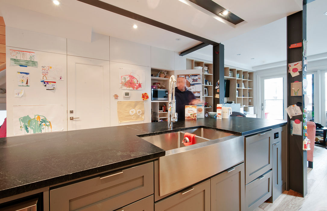 This project consisted of a full-gut modernization plus rear addition of an existing century home in Toronto's West End. A raw industrial aesthetic blends and compliments the original character of the home. The use of Corten steel, variegated woods, and concrete, compliment traditional Shaker style cabinets and doors, traditional trims, and soapstone.